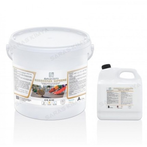 Rubbermax Supreme ECO (Saras Kimya) – двухкомпонентный клей на основе чистого полиуретана для укладки резиновых и спортивных покрытий на открытых площадках и внутри помещений на любые типы оснований (металл, цементная и гипсовая стяжка, асфальт, керамическая плитка, полимерные покрытия). Учитывая специфику монтажа резиновых покрытий на открытых площадках, клей Rubbermax Supreme ECO обладает клеевым швом, устойчивым к УФ-излучениям к низким и высоким температурам, гарантируя надёжность приклеивания покрытия на протяжении всего срока его эксплуатации. Отсутствие в составе растворителей позволяет комфортно производить монтаж каучуковых и резиновых покрытий внутри помещений. Клеевой риф не даёт усадки, механически очень прочный и химически устойчивый. Предназначен для профессионального применения.