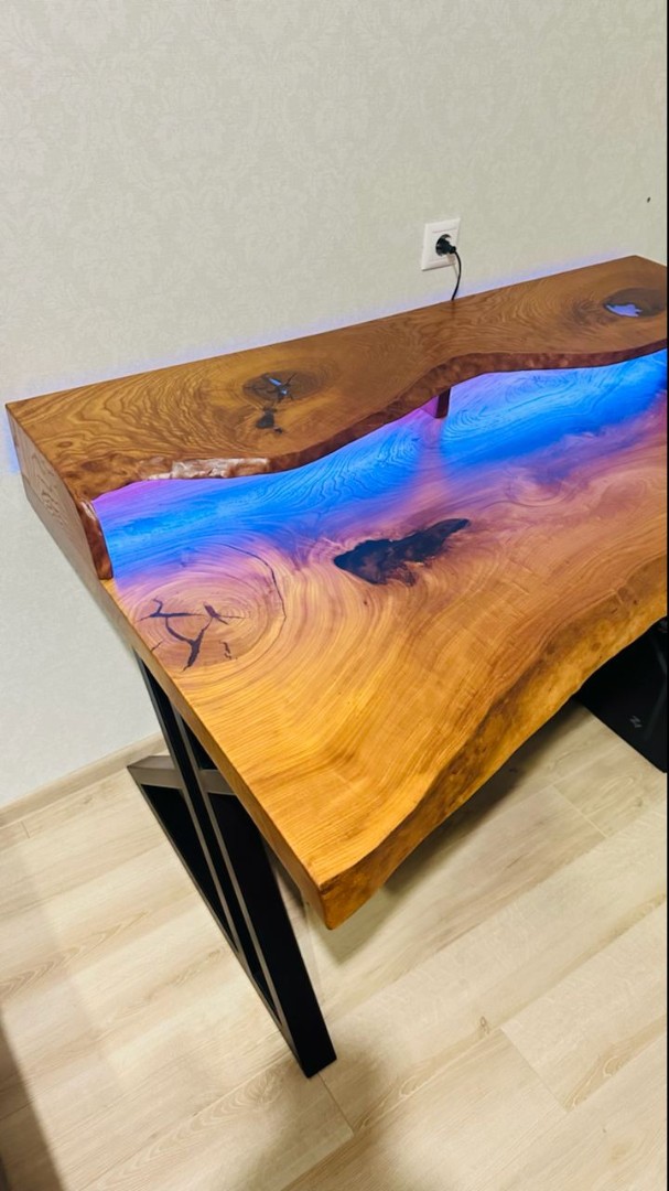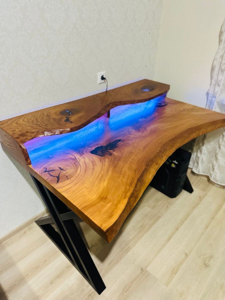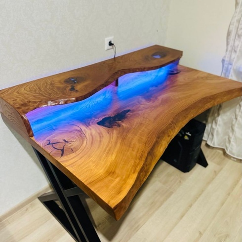 Компьютерный стол из слэба с подстветкой