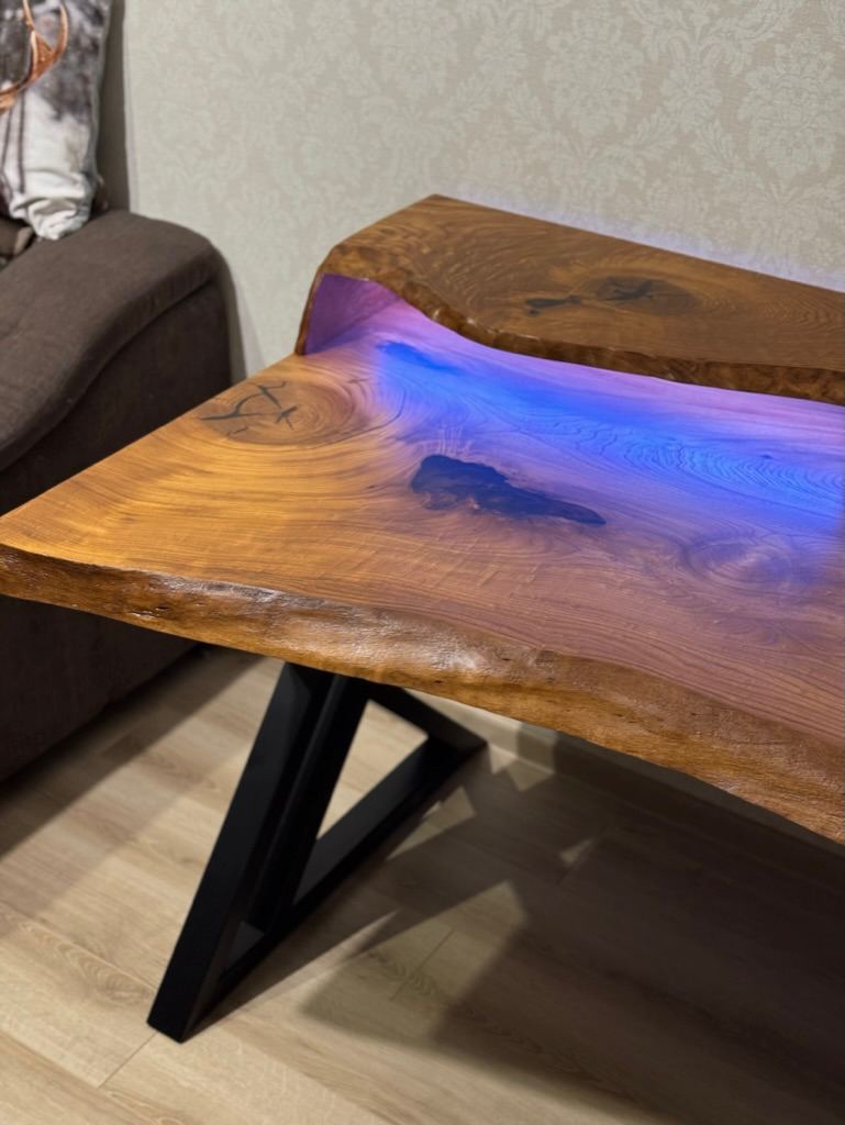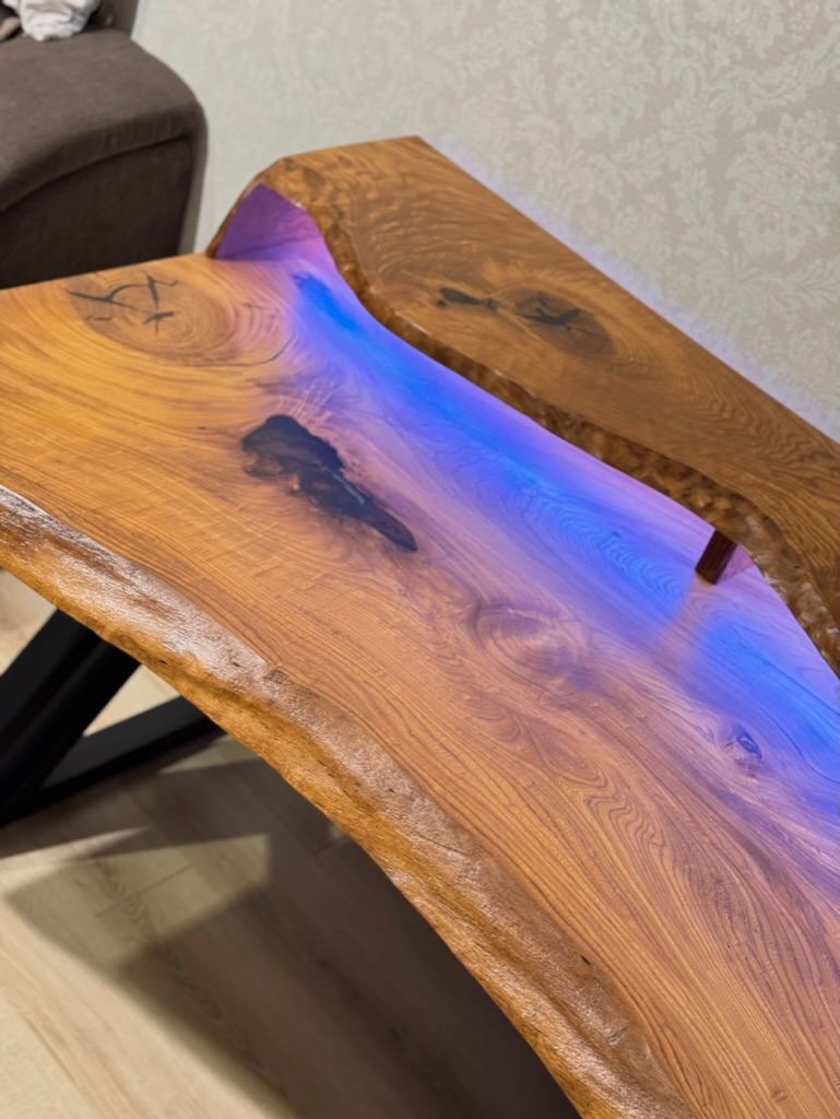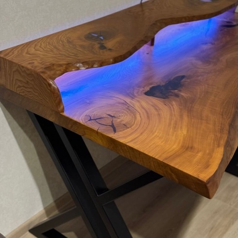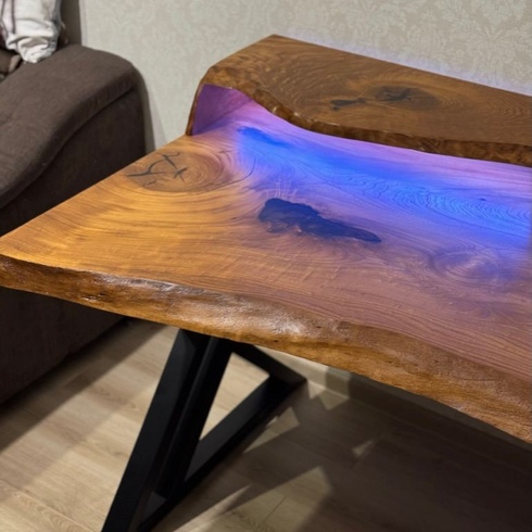 Стол из натуральной древесины (слеба) липы и эпоксидной смолы изготавливается под заказ. Рисунок и цвет смолы может быть любым на ваше усмотрение. Итоговую стоимость уточняйте у менеджера. Гарантия 1 год.
