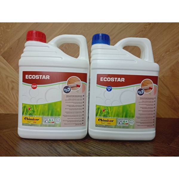 Ecostar OP – итальянский лак для паркета. При нанесении Экостар придаёт древесине тёплый, слегка золотистый оттенок. За счёт того, что он является суперматовым лаком, он практически не виден на поверхности деревянного пола. Благодаря высокому содержанию полиуретана, паркетный лак Экостар имеет высокую абразивную стойкость к истиранию, царапинам, следам от обуви, и воздействию химических бытовых реагентов и бытовых чистящих средств, на уровне некоторых двухкомпонентных лаков.