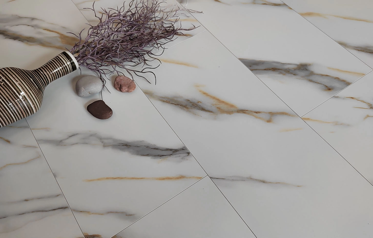 Ламинат MSPC Stone Floor Мрамор Бело-золотой