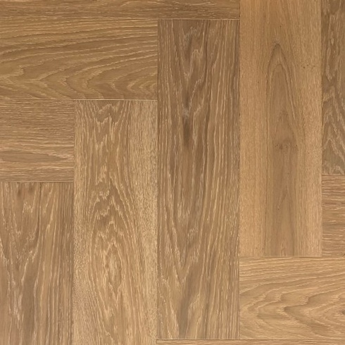 Инженерная Паркетная доска на HDF плите. Верхний слой - Дуб \ Ясень 2,3 мм. Средний слой - HDF плита (Германия) плотностю 980 кг/м³, пропитанная влагозащитным материалом, категорией экологичности Е-1 (как хвоя). Масло и отедльный слой воск Osmo (Германия) 45 - 55 гр./м², лак Elastik (Италия) - 80 - 90 гр./м². Сортировка селект: сучки максимальные - "глазки", заболонь - недопустима. Сортировка рустик: сучки зашпаклеванные - любые, заболонь - недопустима, если декор не обрабатывается копчением. Нижний слой - березовый шпон. Замок - Unilin Click. Допустима укладка на теплый пол. Фаска 4х сторонняя - 4V.