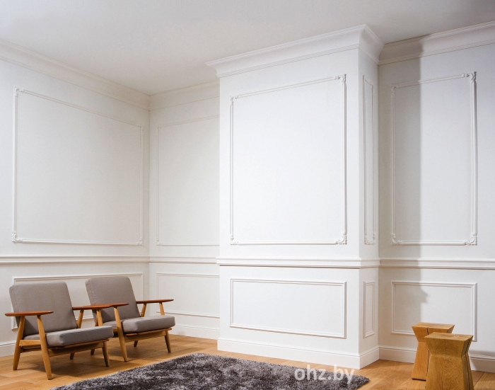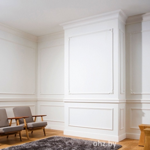 Плинтус производителя OHZ не требует окраски и подходит для всех типов напольных покрытий. Устанваливается с помощью клея. Высокая плотность материала 600-750 кг/м3 обеспечивает устойчивость к повреждениям.