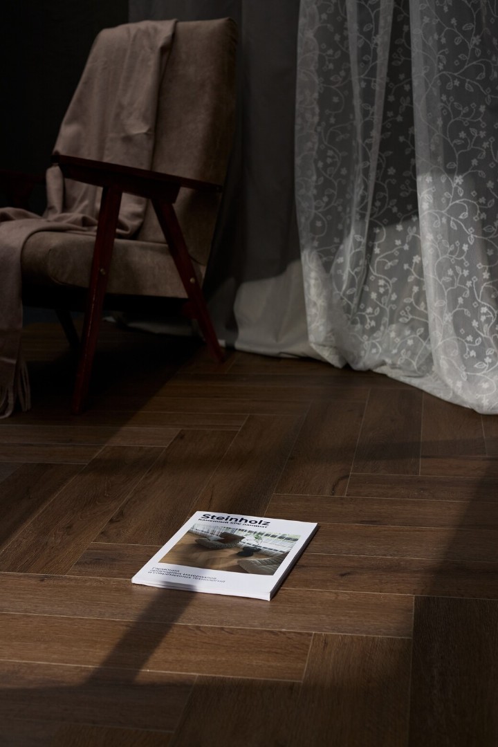 Steinholz Herringbone Либе STH052H - декор в насыщенном темно-коричневом цвете для классических интерьеров.